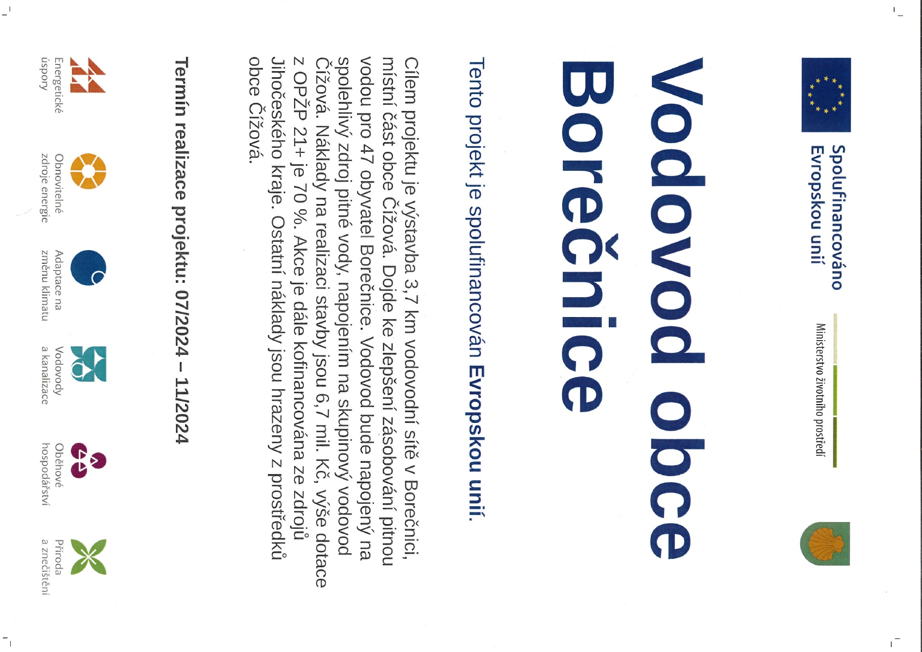 Dotace z Krajského investičního fondu byla a poskytnuta dotace na akci: Vodovod obce Borečnice